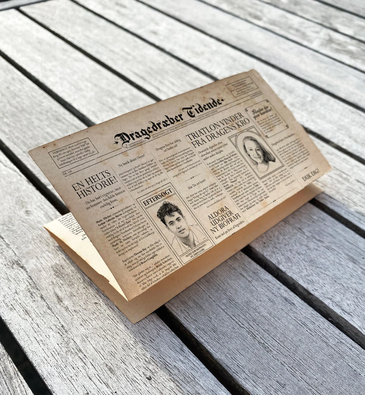 Et lille program til familie musicallen “A Hero’s Tale”. Roller og krediteringer er skrevet som artikler og annoncer i en stil der passede til historiens finurlige univers. Se hele programmet her.