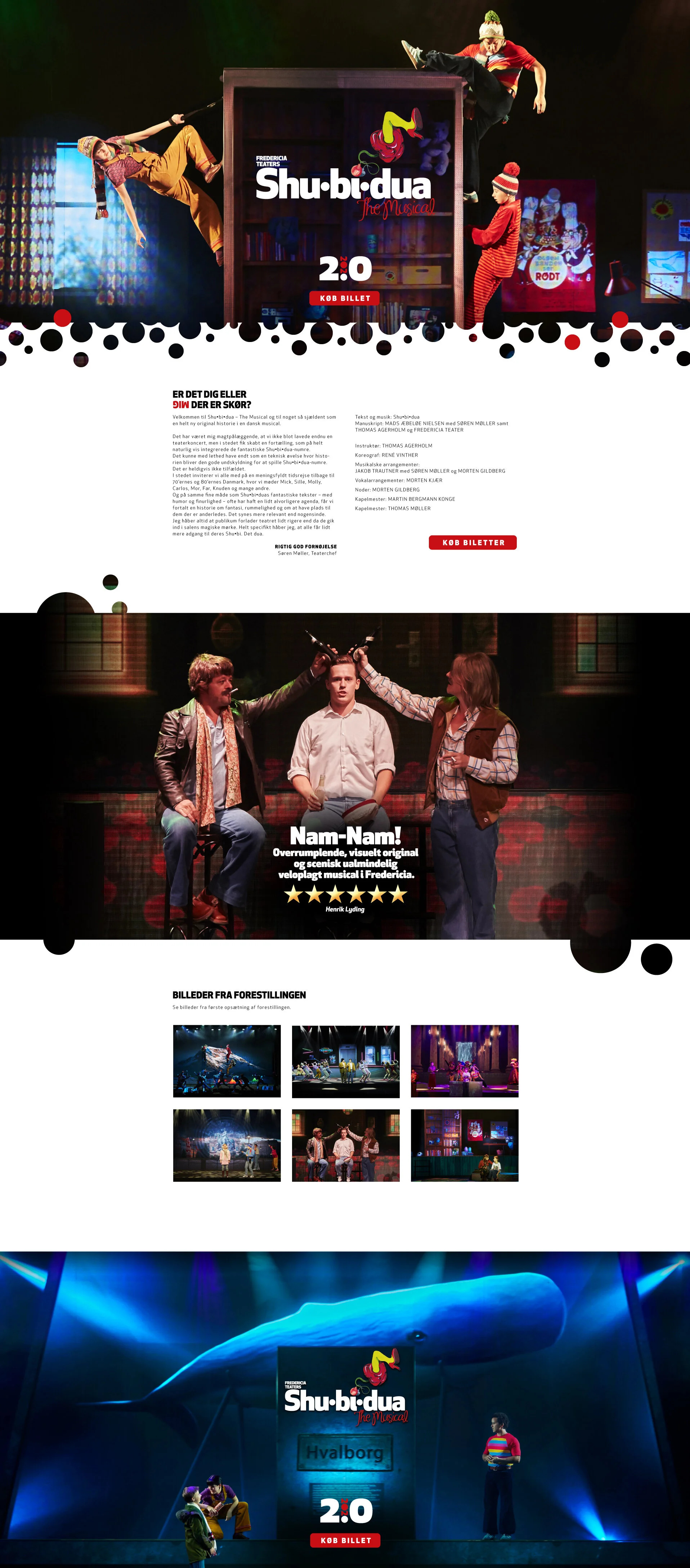 Layout og grafik til kampagnesiden til Shu•bi•dua - The Musical. Siden blev lanceret med dette layout i forbindelsen med den planlagte genopsætning i 2020.